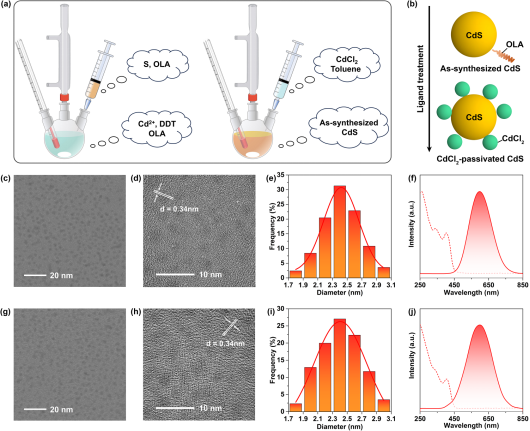 近日,娱乐城 高压与超硬材料全国重点实验室肖冠军教授等人在传统CdS量子点表面缺陷态的压力调控研究中取得重要进展。研究团队通过选择结合力更强、配位位点更丰富的原子配体CdCl2,成功合成新型包覆结构的CdS量子点。高压处理进一步强化了量子点与配体之间的相互作用,有效修饰了其表面态,促使激子向量子点表面离域扩展。压力有效优化了CdS–CdCl2界面,促进激子离域与表面钝化效应,从而显著提升了发光性能。该研究为拓展量子点材料在光电子学领域的应用提供了新颖的设计思路与理论依据。相关研究成果以“Enhanced Excitons Delocalization Toward High-Quality Emission Harvesting Unlocked by Pressure and Ligand Engineering”为题发表在《Nano Letters》上。