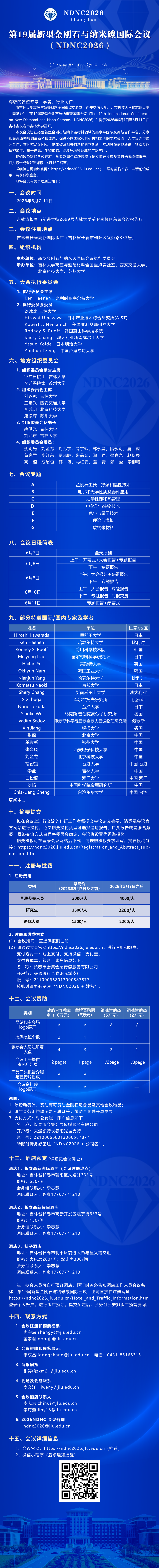 第19届新型金刚石与纳米碳国际会议(NDNC2026)