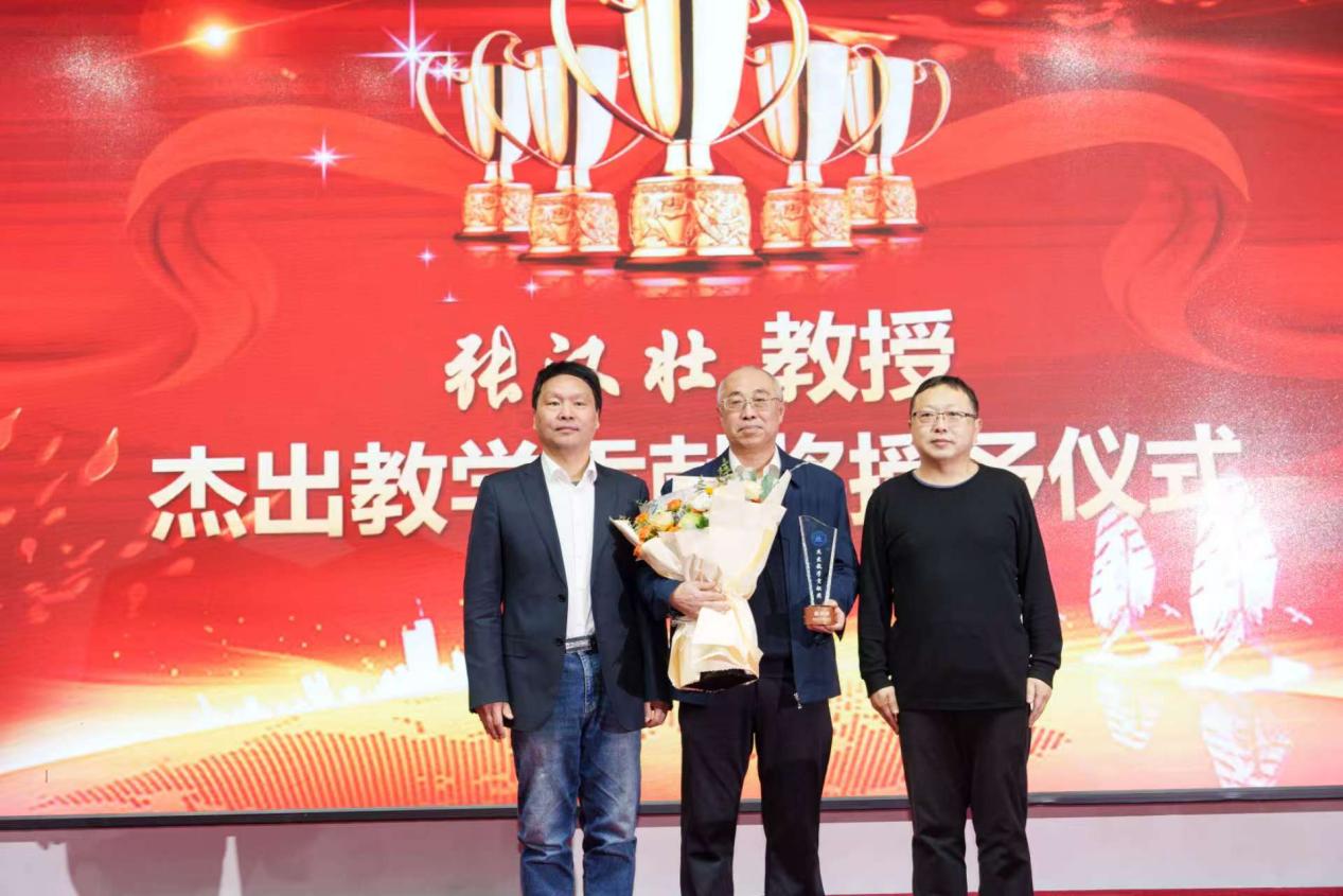 随后,联欢会举行了年度杰出教学贡献奖颁奖仪式,该荣誉授予长期深耕教学一线的张汉壮教授。张汉壮教授自1981年进入吉大以来,四十余年如一日坚守教学科研一线,在光学领域潜心探索,主持多项国家自然科学基金,培养大批硕博人才;教学中,他累计为六千余名本科生授课,创建多门国家级一流课程,编著国家级规划教材,积极推动人工智能与教育融合,足迹遍布全国开展教学报告,以实际行动诠释“教学为本”的师者初心。