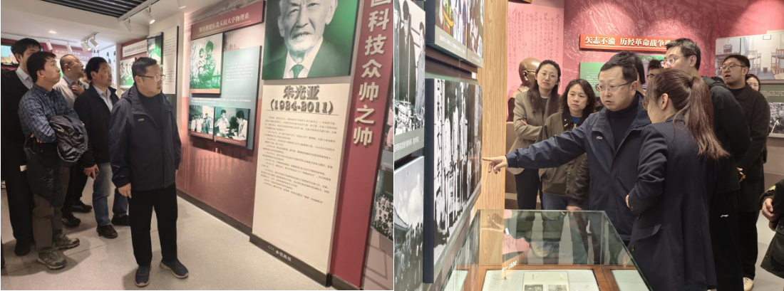在物理学科先贤专属展陈区域,全体人员久久驻足、凝神瞻仰,深切感受物理人的赤子情怀与使命担当。余瑞璜同志白手起家、筹建物理系,以坚韧之志诠释学科奠基的开拓者本色;朱光亚同志自朝鲜战场归来后倾心投身物理学科建设,以战略远见为国家培育栋梁之才;吴式枢开创理论物理、核物理研究新领域,芶清泉深耕原子与分子物理前沿,高鼎三开拓半导体学科新方向……一代代物理学者薪火相传、潜心笃行,以“功成必定有我”的责任担当,在艰苦卓绝中筑就学科根基,在砥砺奋进中书写学术华章,其师者风范与治学精神令人感佩不已。