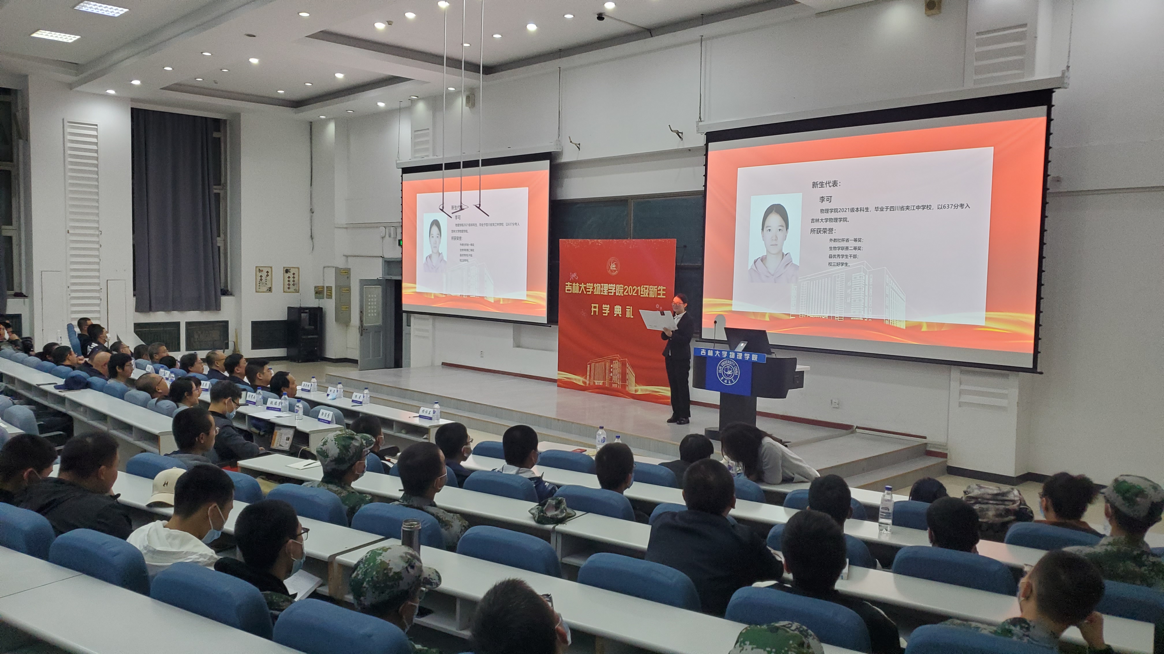 紧接着,学生代表发言。2021级李可同学作为新生代表,以昂扬的精神面貌,展现了 2021级新生不惧困难,怀着对物理的信仰,对未知的渴望,肩负着师长的嘱托,民族的希望,努力奋斗的精神品质。2020院长奖学金获得者之一的廖一朴同学作为老生代表向新同学们分享了自己在娱乐城